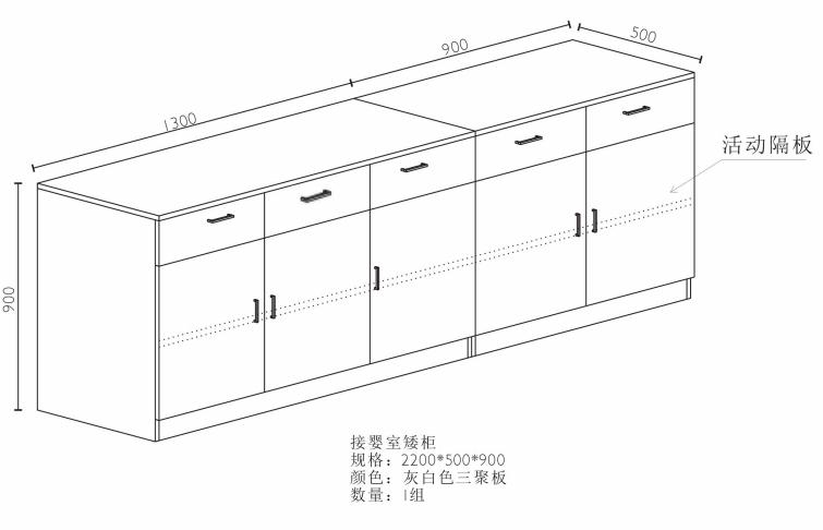 参数:1.基材:优质E1级颗粒板,经过防虫、防腐、防潮等化学处理,各项技术指标要求达到国际标准。2.饰面:采用优质环保型三聚氰胺板贴面,平整度、稳定性高,误差不大于0.1mm,纹理清晰自然、色泽一致。3.封边:1.0mm同色PVC封边,色泽一致,表面平整,产品不含对人体有害成分,甲醛释放量符合国家质量标准。4.五金:优质五金配件,紧密拼接,间隙细小且均匀,顺滑、流畅、宁静。